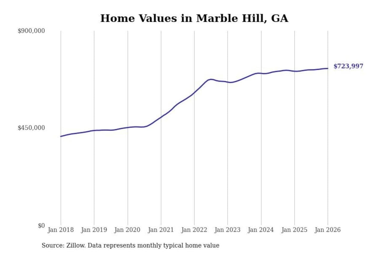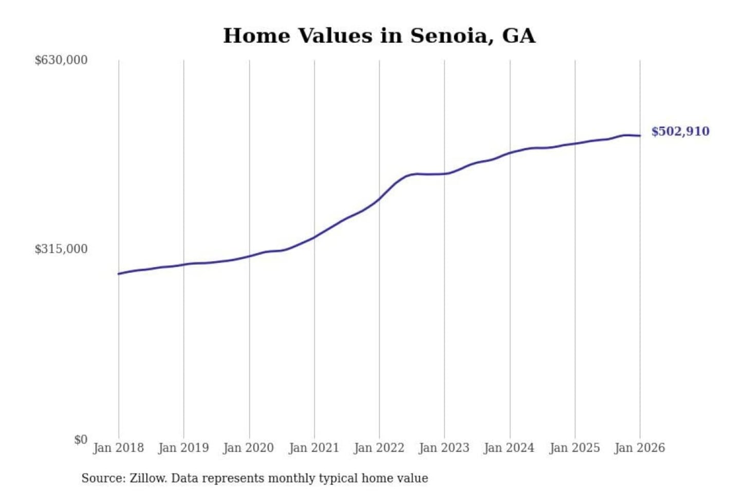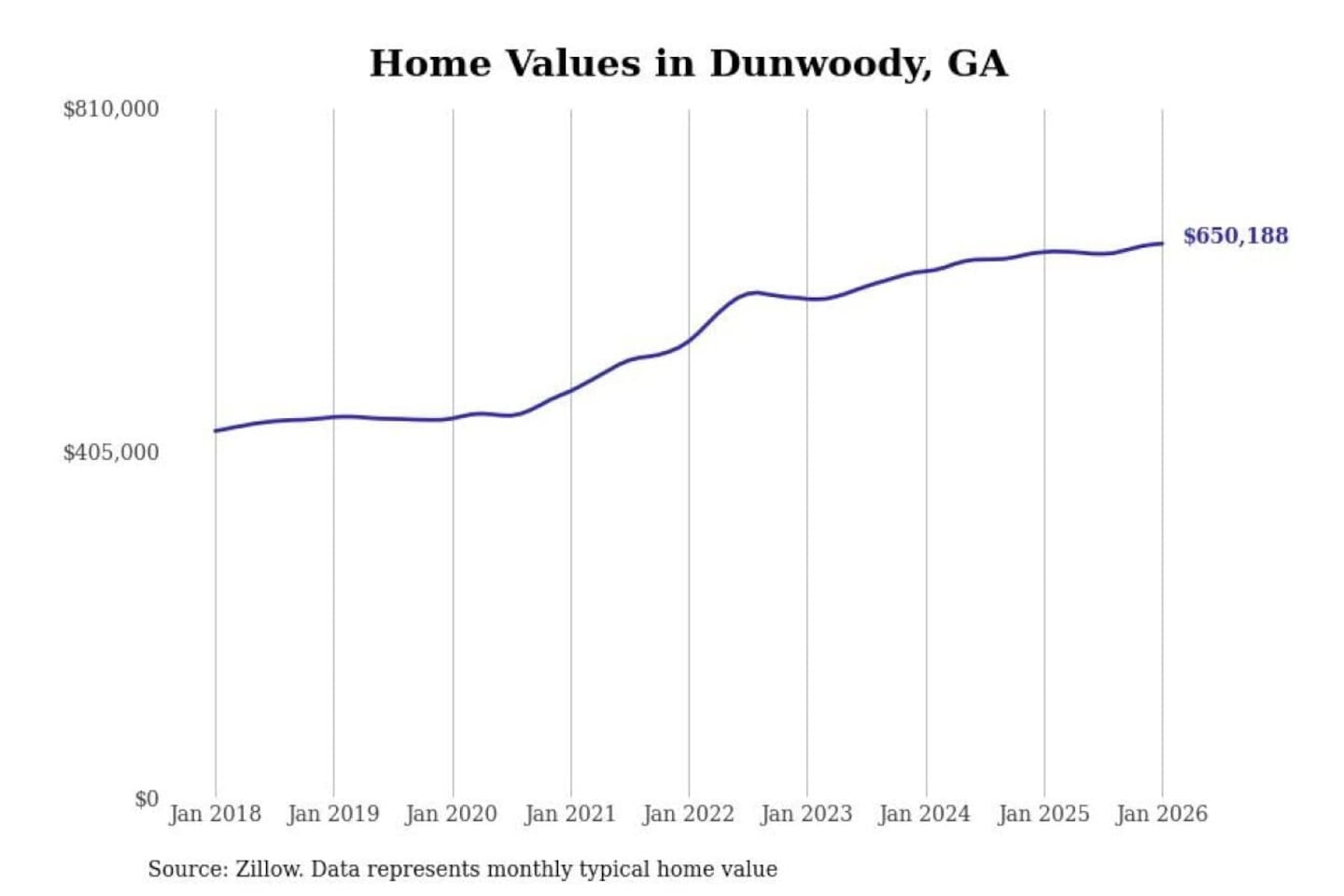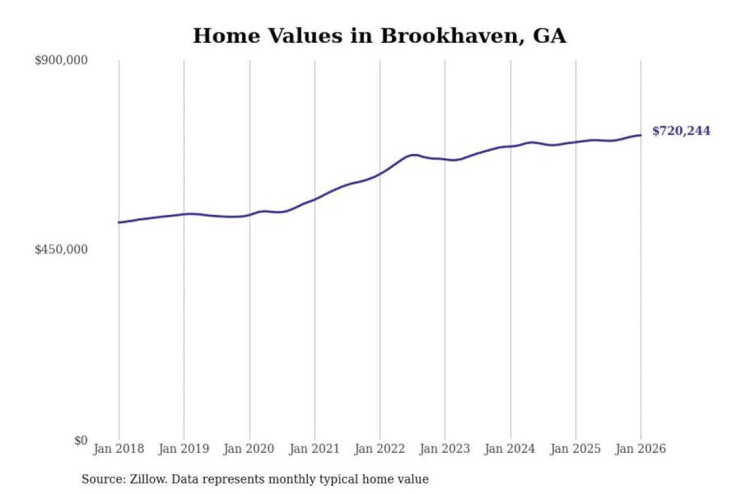 Stacker compiled a list of cities with the most expensive homes in the Atlanta-Sandy Springs-Alpharetta, GA metro area using data from Zillow. Charts show the monthly typical home value since January 2018.