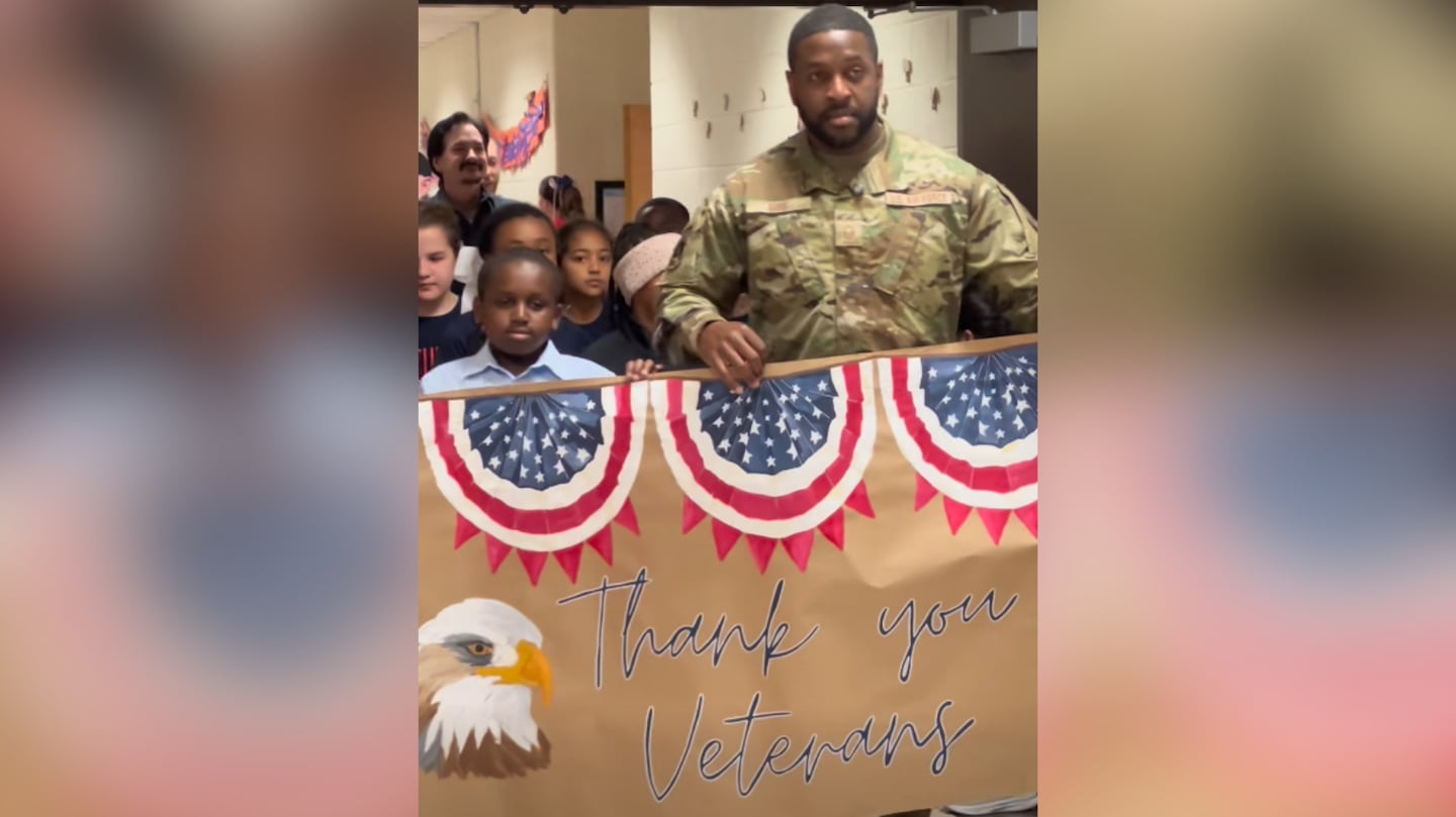 COBB COUNTY, GA — A fourth grader at Kemp Elementary School in Cobb County received an emotional surprise during the school’s Veterans Day ceremony.