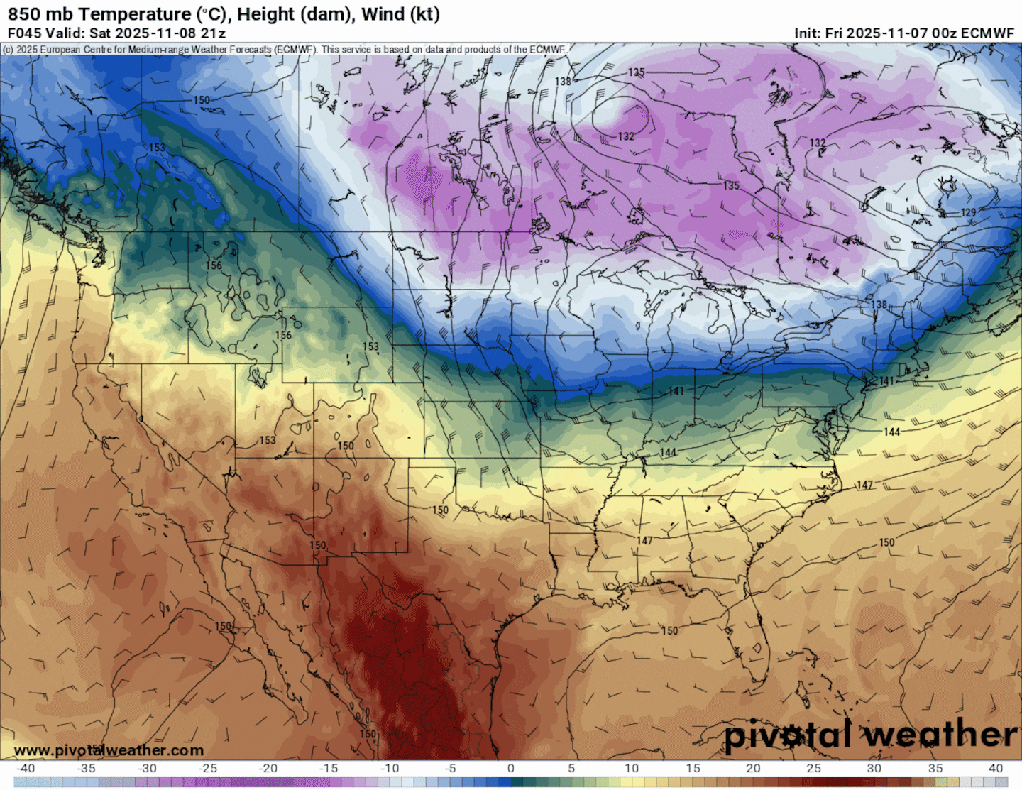 The animation below illustrates the surge of Arctic air as it moves south over the weekend.