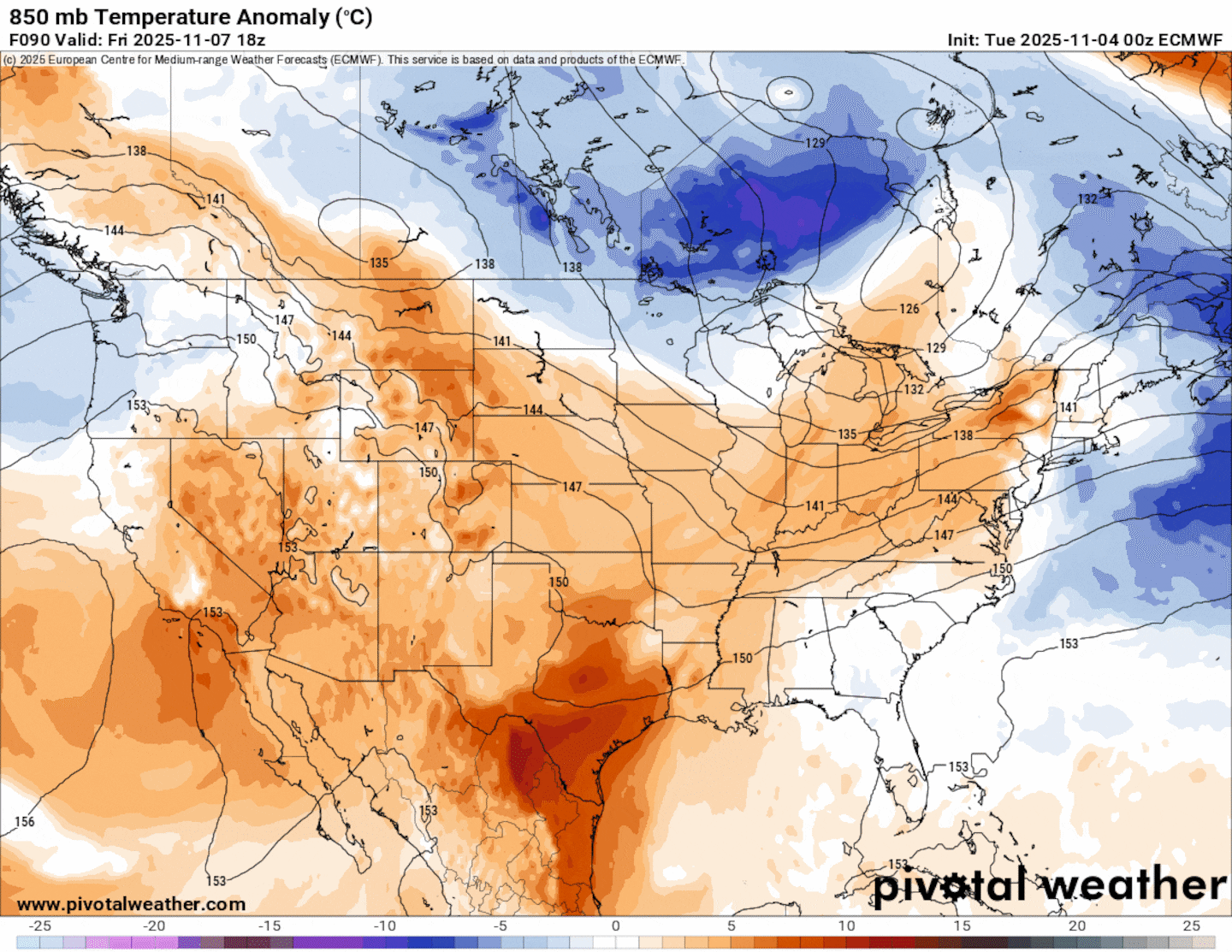The animation below illustrates the Futurecast air temperature anomalies for Saturday through Tuesday.