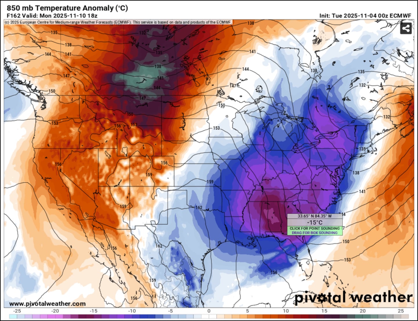 We are a little over half way through Fall, and right on time, extended forecast models indicate that Metro Atlanta may experience its first freeze of the season around Veterans Day.