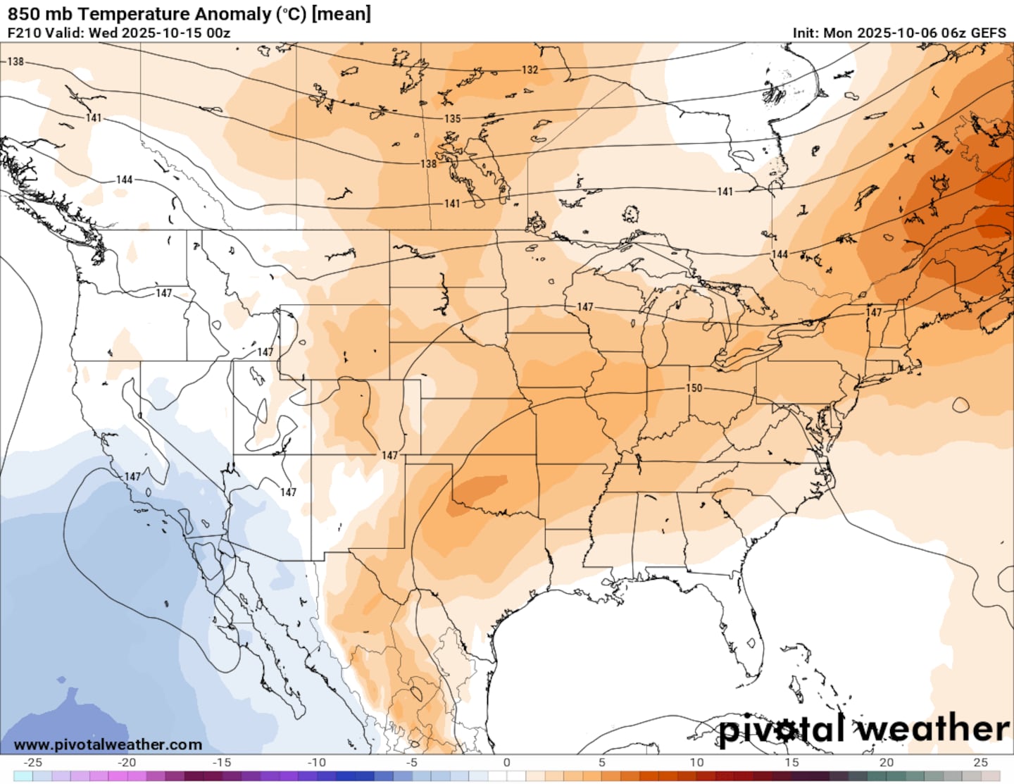 Both the GFS and ECMWF ensemble models are indicating afternoon temperatures trending 6 to 10 degrees above average around October 14 this year.