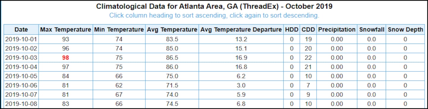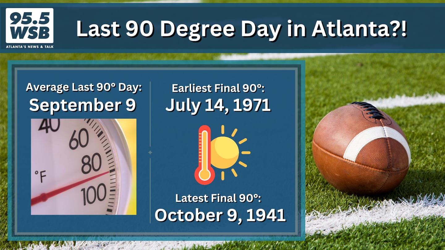 So far in Atlanta’s climatological record, the latest 90 degree day is October 9, 1941.