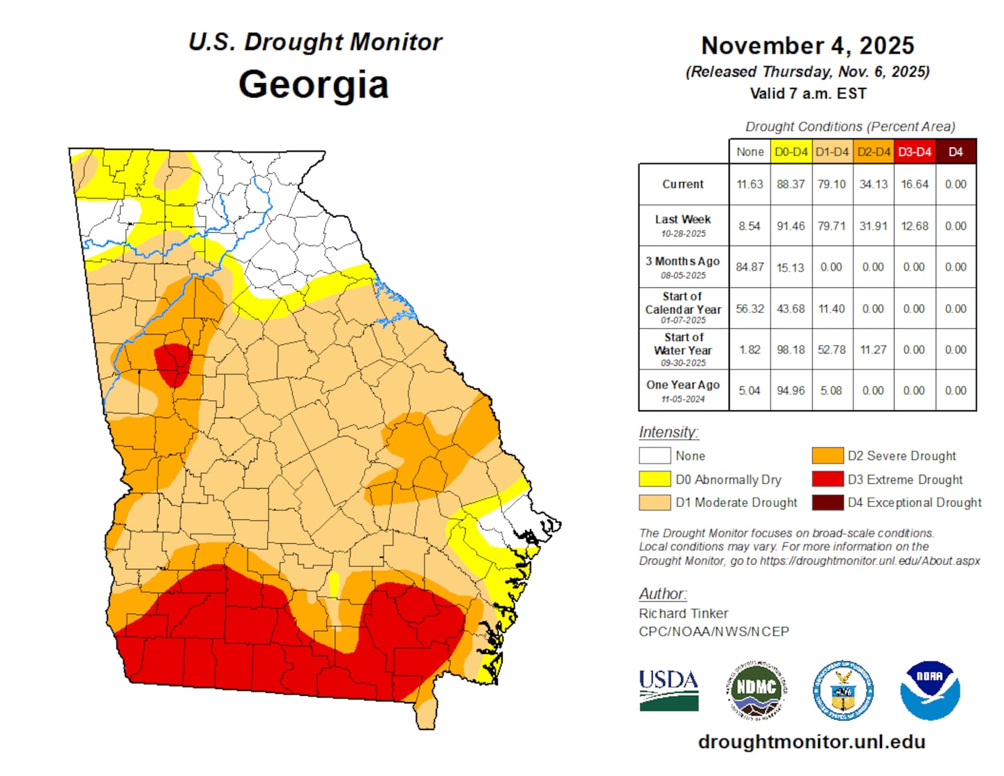 Still, any amount of rain is a good thing! The latest Drought Monitor for Metro Atlanta shows some improvement south of I-20, though an area of Severe Drought (D3) still continues in Fayette, Spaulding and Coweta counties.