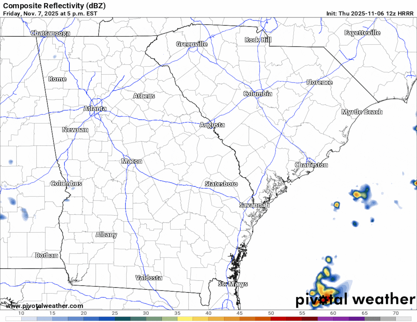 Scattered rain showers and thunderstorms will roll into North and Central Georgia late Friday night, with the bulk of the rain falling early Saturday morning.