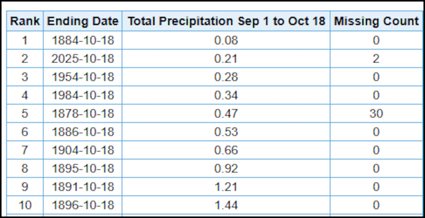 Metro Atlanta is experiencing its second driest Fall on record, to date, with less than a quarter of an inch of rainfall since September 1.